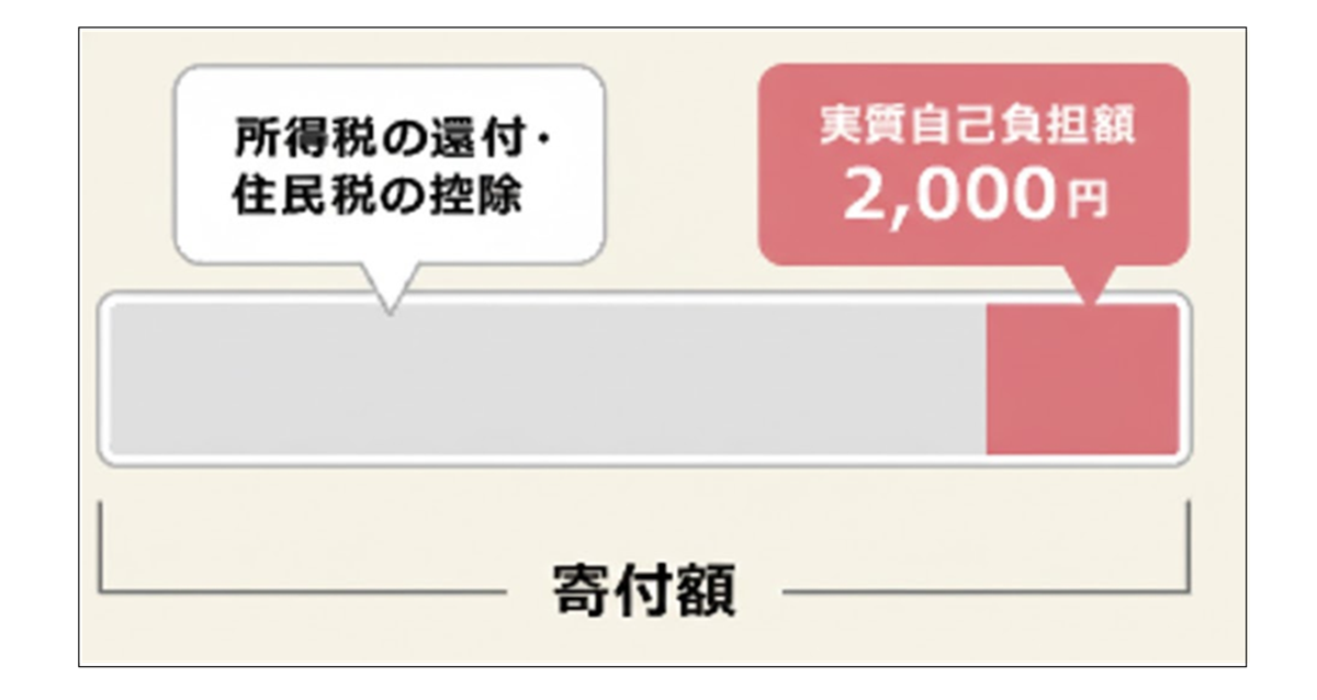 • 寄付額から2,000円を引いた金額が、翌年の税金から控除される