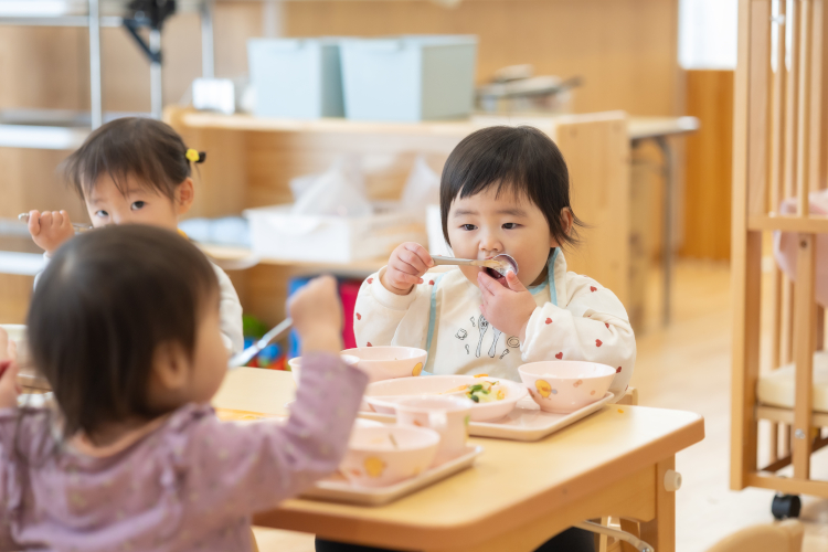 「おいしいね!」とニコニコ笑顔で、みんなでもりもり食べます