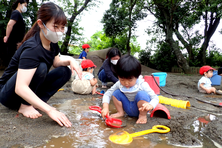 私たちは、子どもたちが生活や遊びの中で主体的に活動に取り組み、毎日を心から楽しみながら成長していけるよう「子ども主体の保育」を大切にしています。保育者は「教える」のではなく、問いかけや必要なサポートを通じて子どもの意欲を引き出す関わりを心がけることで、一人ひとりの子どもが「自分で考えて自分で行動する」力を育んでいます。子どもの創意工夫や成長を一緒に喜べる方と一緒に働けることを楽しみにしています。