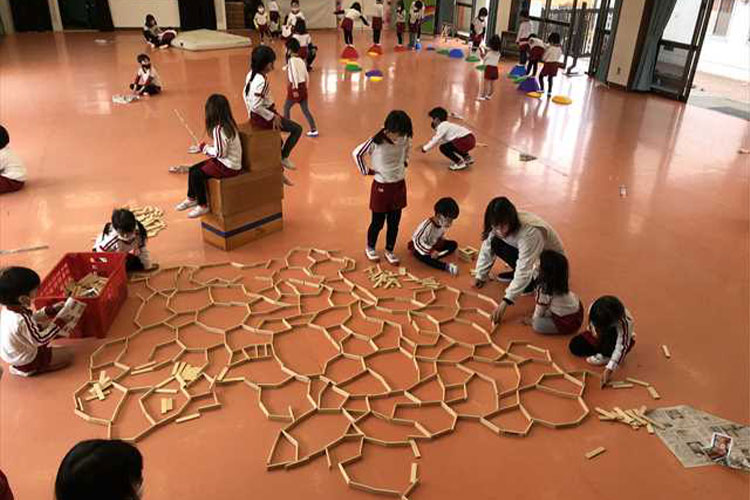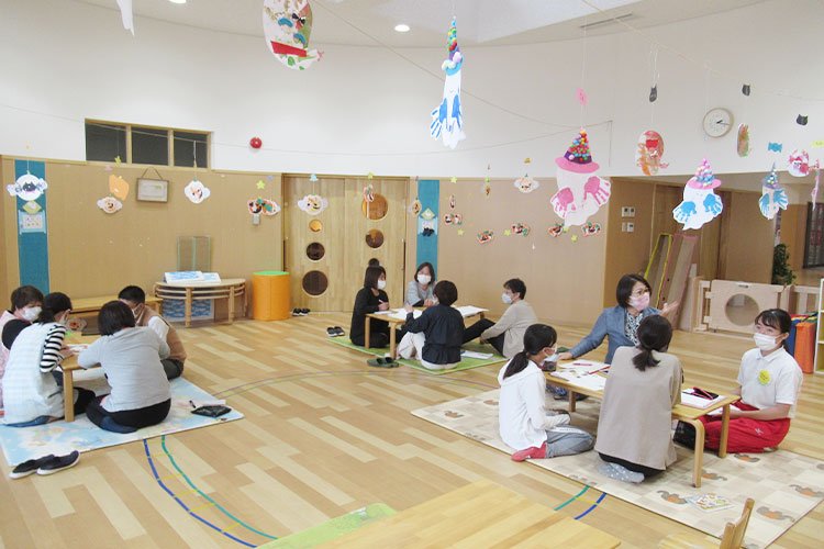 研修制度は職員からも高い評価を受けており、平均月1回の外部講師研修では園外からの新鮮な視点や刺激的な学びを取り入れ、職員の成長をサポート。中でも年1回開催される法人研修では4つの園の職員が集合し、それぞれの園の規模や経歴、年齢が異なる職員が1つのグループをつくり、工夫や実践事例を交換します。普段一緒に働く仲間以外との交流を経て思わぬ気づきが生まれ、職員同士が刺激し合える貴重な機会となっています。