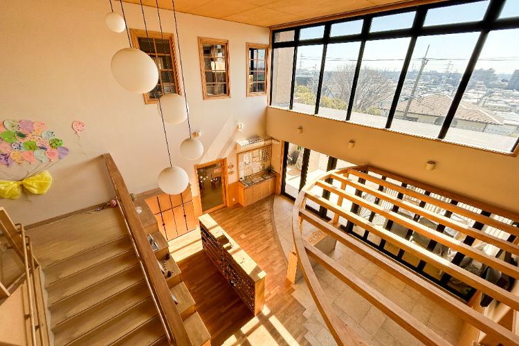 思い切り遊べる園庭、木の温もりを感じる園舎にこだわっています。保育室は子どもの発達に応じて「やってみたい」と手に取りやすい玩具や教材を配置し、成長を促す環境を整えます。